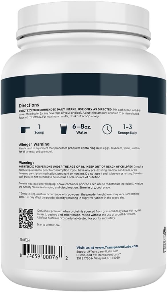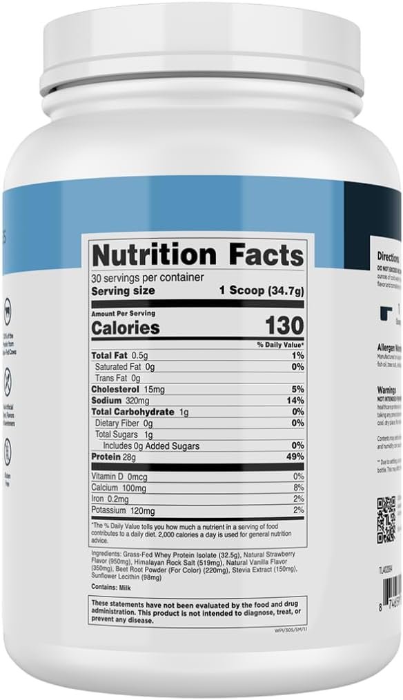 Ingredients You Get: Grass‑fed whey protein isolate, natural flavor, stevia extract (natural sweetener), salt, and sunflower lecithin for smoother mixing.