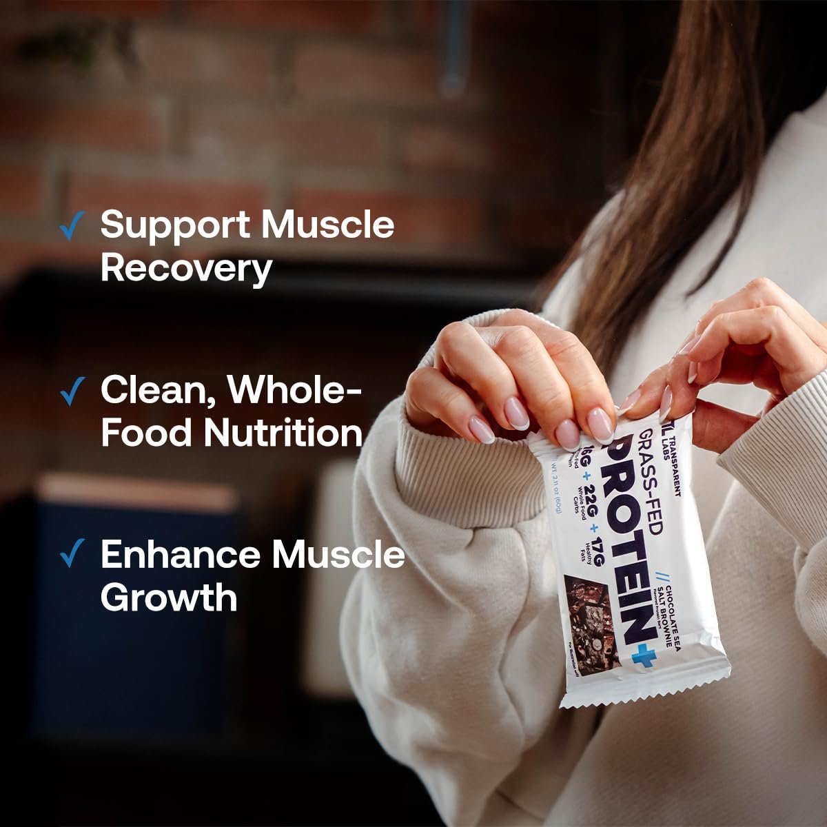 Transparent Labs Grass‑Fed Protein+ Bars – Real‑food based bars with ~15‑16 g protein from grass‑fed whey isolate and egg whites, balanced carbs + healthy fats, and no sugar alcohols or artificial sweeteners — great as a post‑workout snack or on‑the‑go mini‑meal.