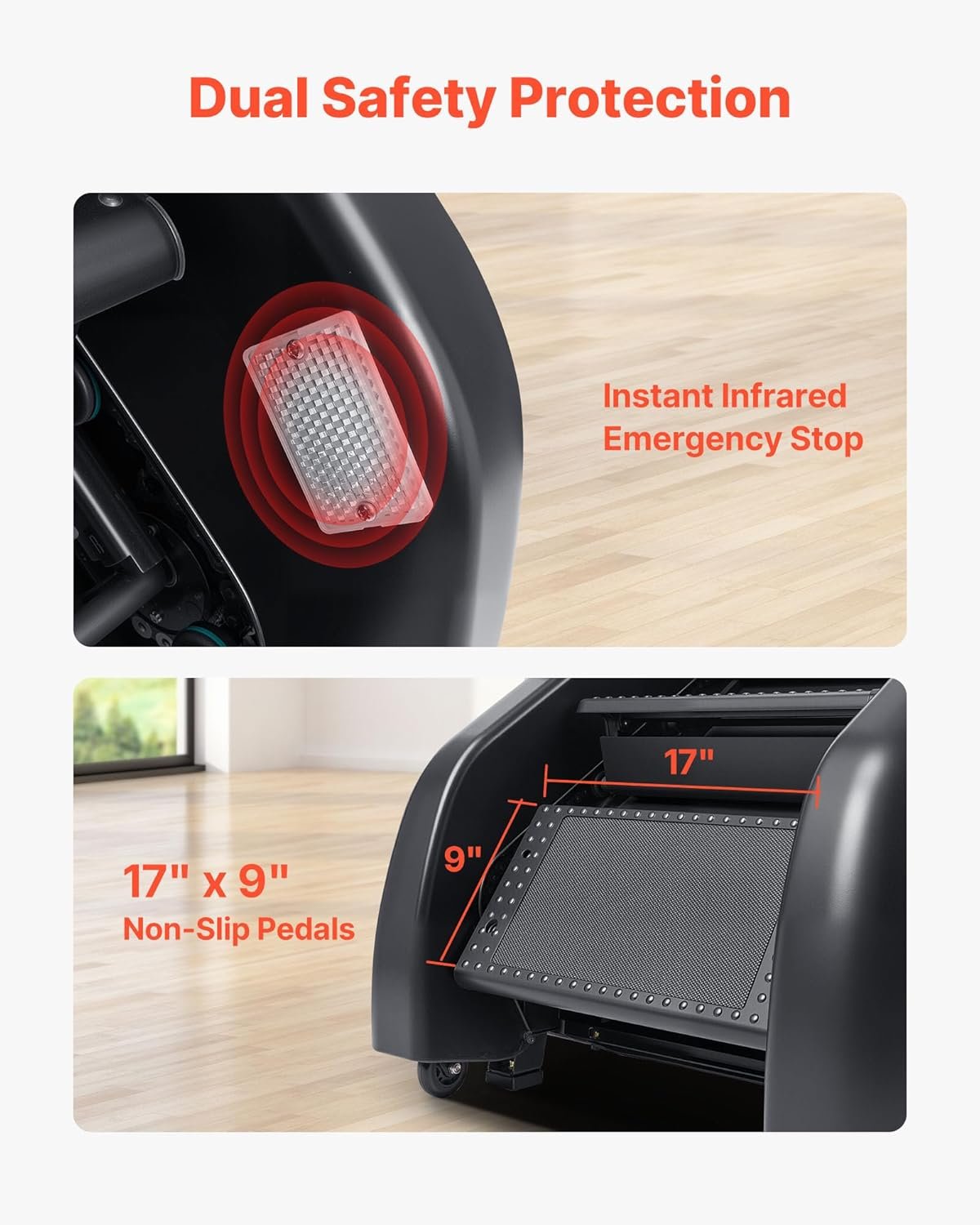 Train with confidence thanks to a robust triple-safety system. The machine features an infrared sensor for instant emergency stop, textured non-slip pedals for secure footing, and sturdy side handlebars for support. The 6-step ergonomic climbing structure with a natural 6-inch rise per step scientifically targets your glutes, hamstrings, and calves for an effective, low-impact workout.