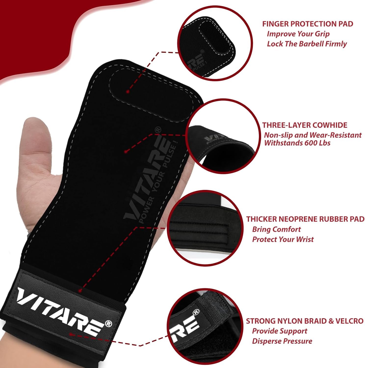 • Helps reduce grip fatigue on heavy pulls and deadlifts