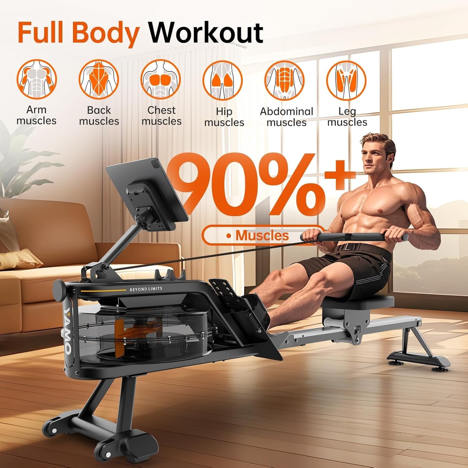 The YAMO Water Rowing Machine for Home is a water-resistance rower designed to bring a smooth, natural rowing experience into your home gym. It mimics the sensation of rowing on actual water — with real drag and soothing flow sounds — while remaining durable, adjustable, and connected to modern fitness tracking.