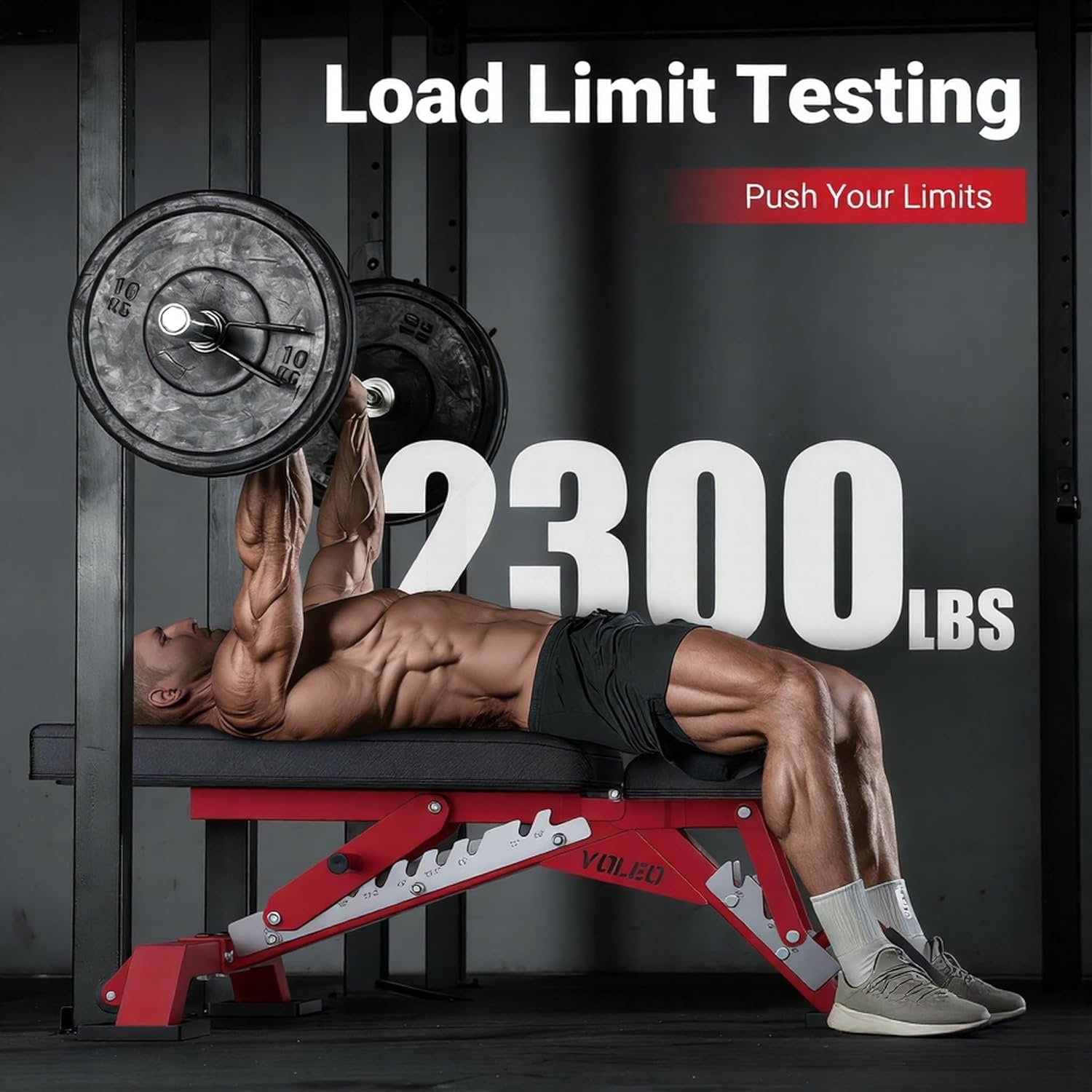 Weight Capacity: Tested to up to 2300 lbs total load — among the highest capacities in adjustable benches — covering lifter weight plus loaded barbell/dumbbells with confidence.