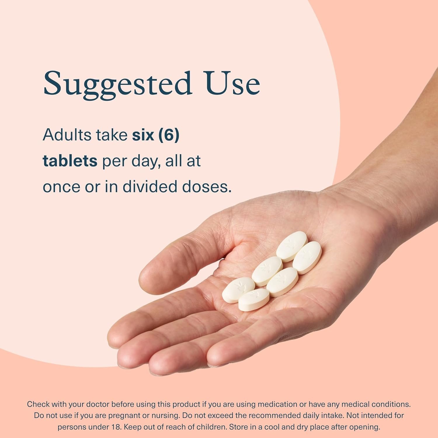 • Suggested use is six tablets daily — which can be taken all at once or divided throughout your day.