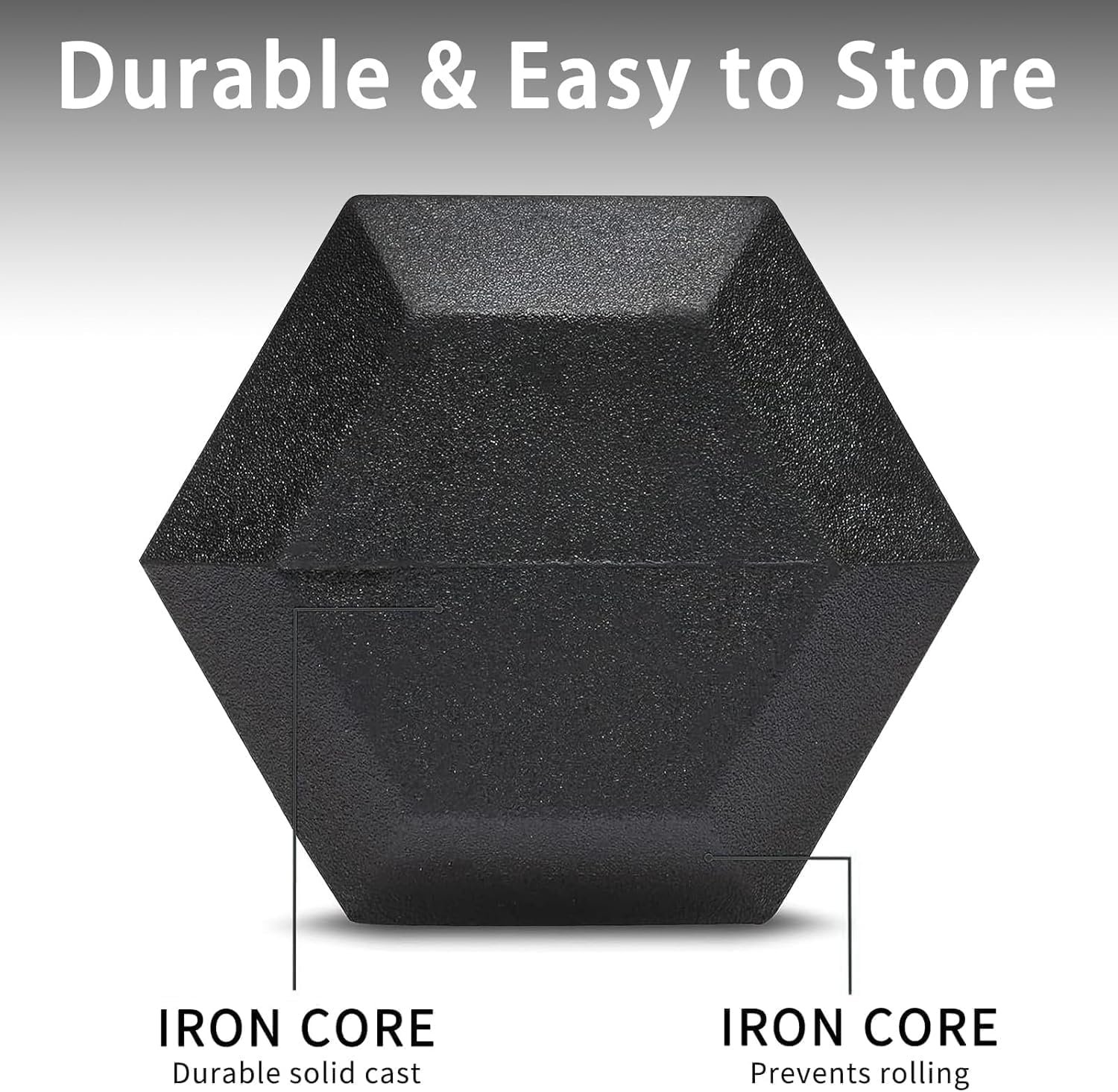 | Dumbbell Type | Hex-shaped heads, rubber-coated iron core |